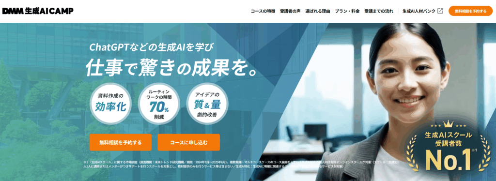 当サイトの人気No.1は「DMM 生成AI CAMP」