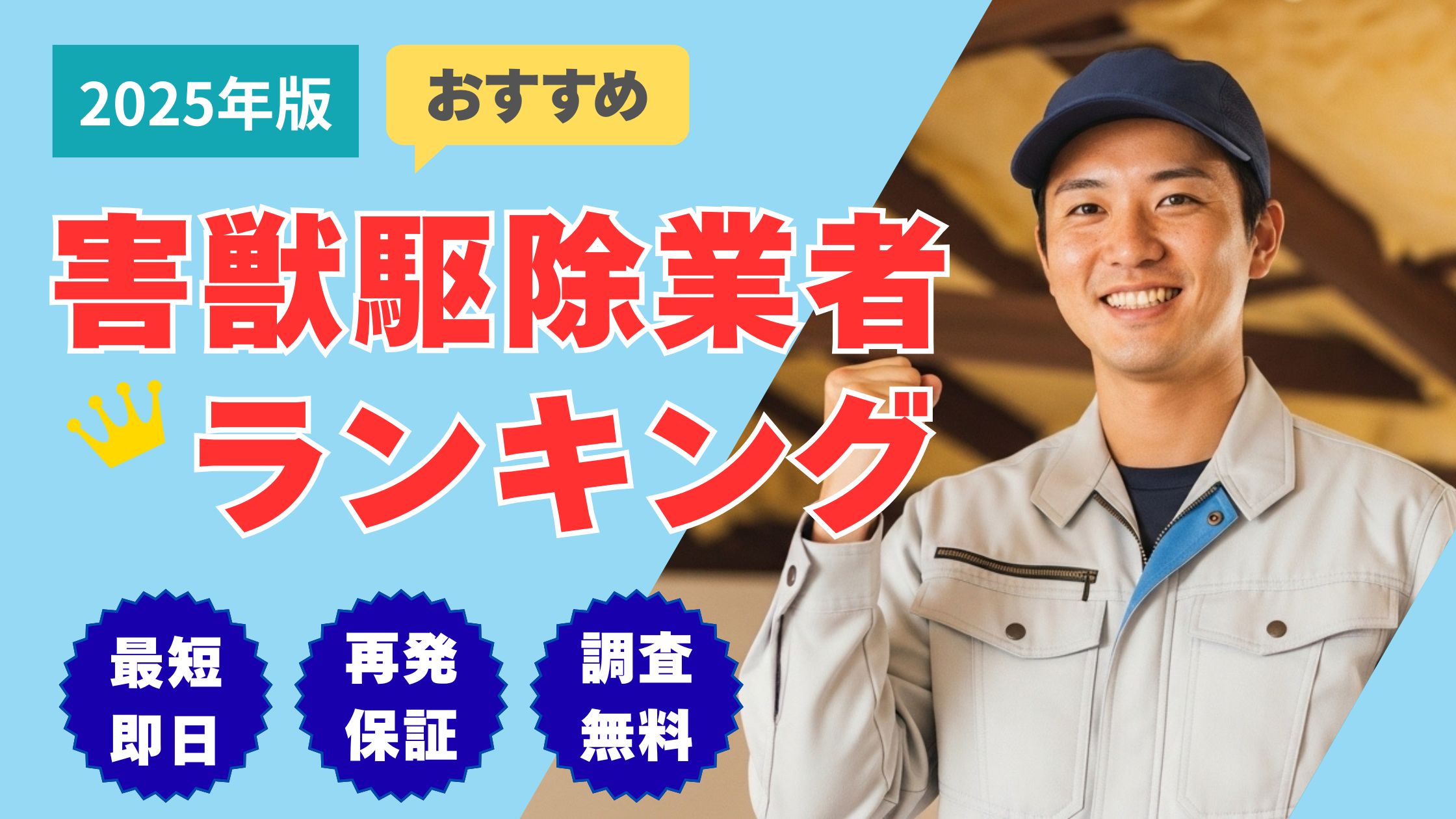 この記事では、施工技術の高さ・実績・口コミ評価・対応スピード・再発防止保証などの観点から、2025年最新版】の信頼できる害獣駆除業者10社を厳選し、ランキング形式でご紹介します。