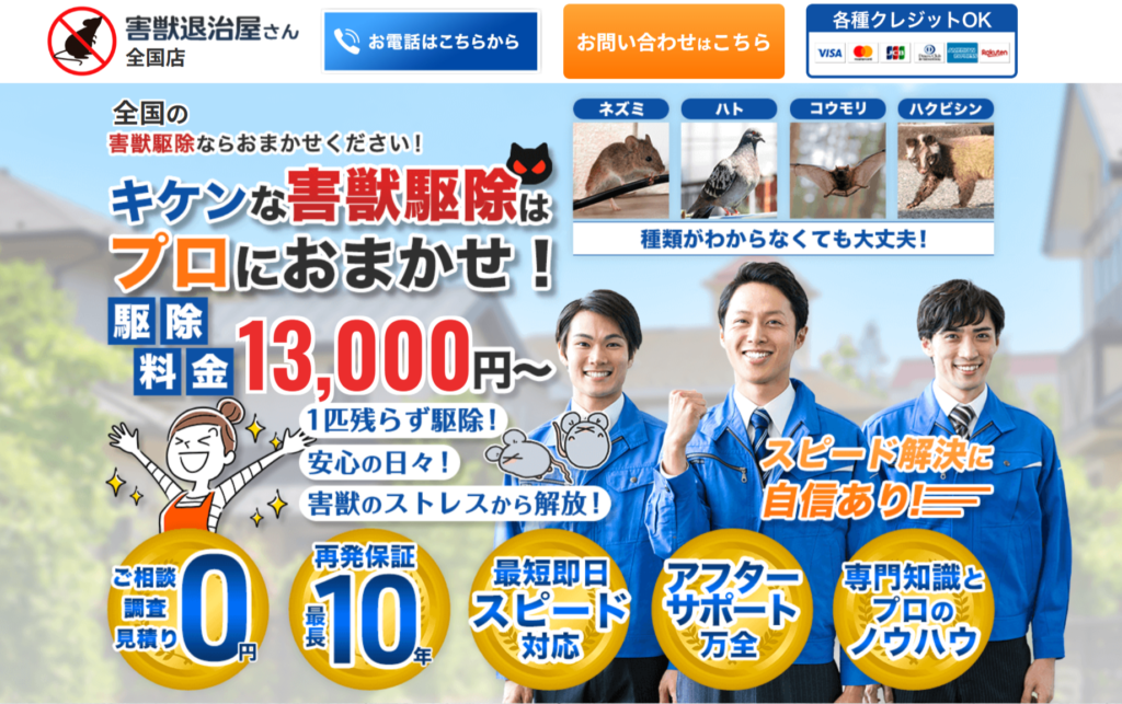 【2026年最新版】害獣駆除業者おすすめ10選をランキング形式でご紹介!費用相場・再発保証・口コミを徹底比較